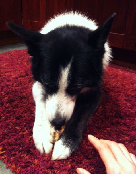 3. All bones and Kongs in the living area were picked up when he was loose, unless we were training