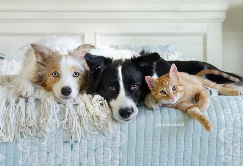 Last Friday, Vanilla and Ice were adopted together by a wonderful family in Texas. I had a lot of inquiries for them, but I narrowed down to two great families for both. One of our volunteers conducted a home visit at one of the homes. The report explained how high energy their young Border Collie was, yet he switched to a calm and sweet dog as soon as his mom brought out her cat. The volunteers said “He reminded me of Phoebe.” I had goosebumps all over my body when I read that. Both Vanilla and Ice love Phoebe, and I had wished they would have a canine sibling like Phoebe. And they will have one of their own permanently!